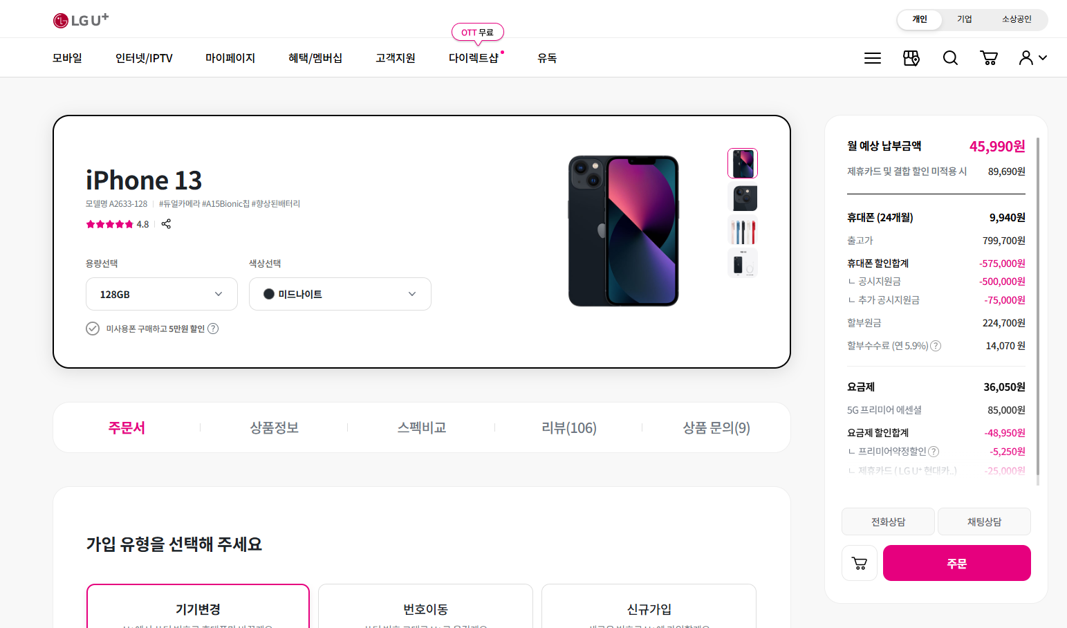 - 유플닷컴에서 휴대폰 상담 신청서를 작성하고 개통을 완료합니다.